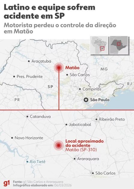 Ao g1, Bruno Freire Ribeiro, empresário do cantor Latino, confirmou o acidente envolvendo o músico e equipe, na manhã desta sexta-feira, 6 de março.