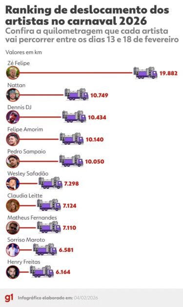 Apesar da longa quilometragem, Zé aparece em terceiro no ranking quando se fala em números de shows no carnaval e de cidades em que vai passar no período.