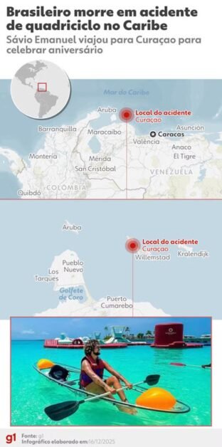Um jovem de 26 anos morreu após sofrer um acidente de quadriciclo durante um passeio turístico em Curaçao, no Caribe. A vítima foi identificada como Sávio Emanuel Arruda Duarte Trajano da Silva, natural de Mossoró, no Rio Grande do Norte.