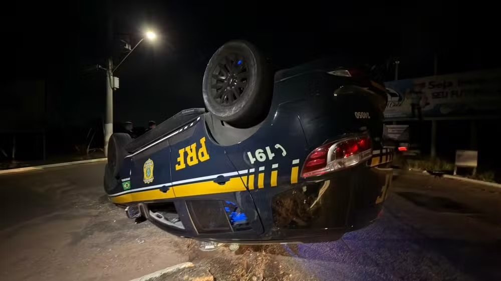 Uma viatura da Polícia Rodoviária Federal (PRF) capotou na noite desta quarta-feira, 21 de janeiro, durante uma perseguição a um motociclista na BR-101, no município de Extremoz, na Grande Natal.